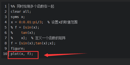 plot(x, y); % 画出y,如果你想更改曲线形状,可以参考第九讲,比如% plot(y, 'o--c')