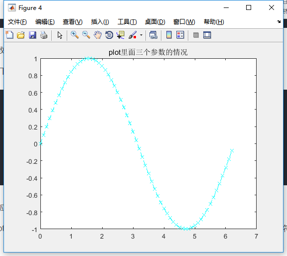 x = 0:0.1:2*pi; % x的取值范围,从0-2*pi,以0.1为分割取值