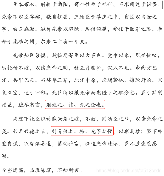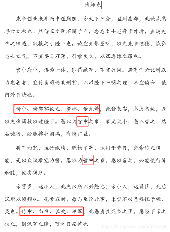1、“侍中、侍郎郭攸之、费祎、董允等”和“侍中、尚书、长史、参军”,要强调一下是侍中、侍郎郭攸之先背诵。