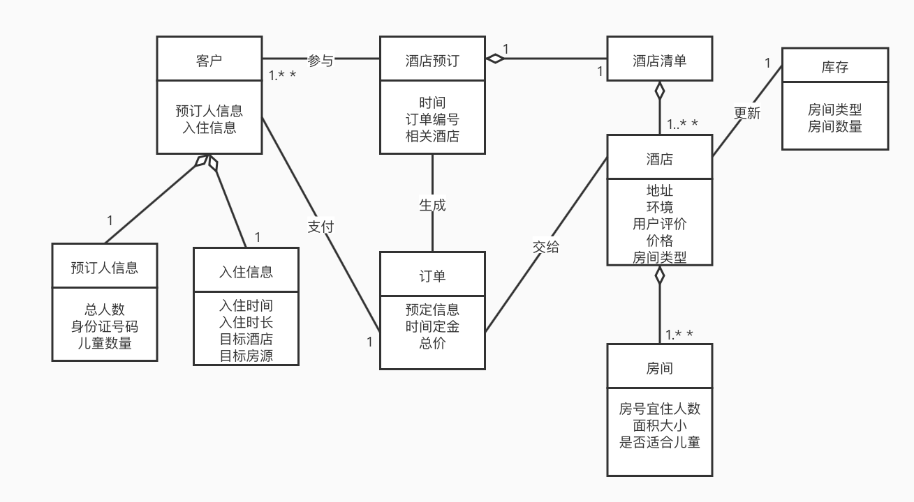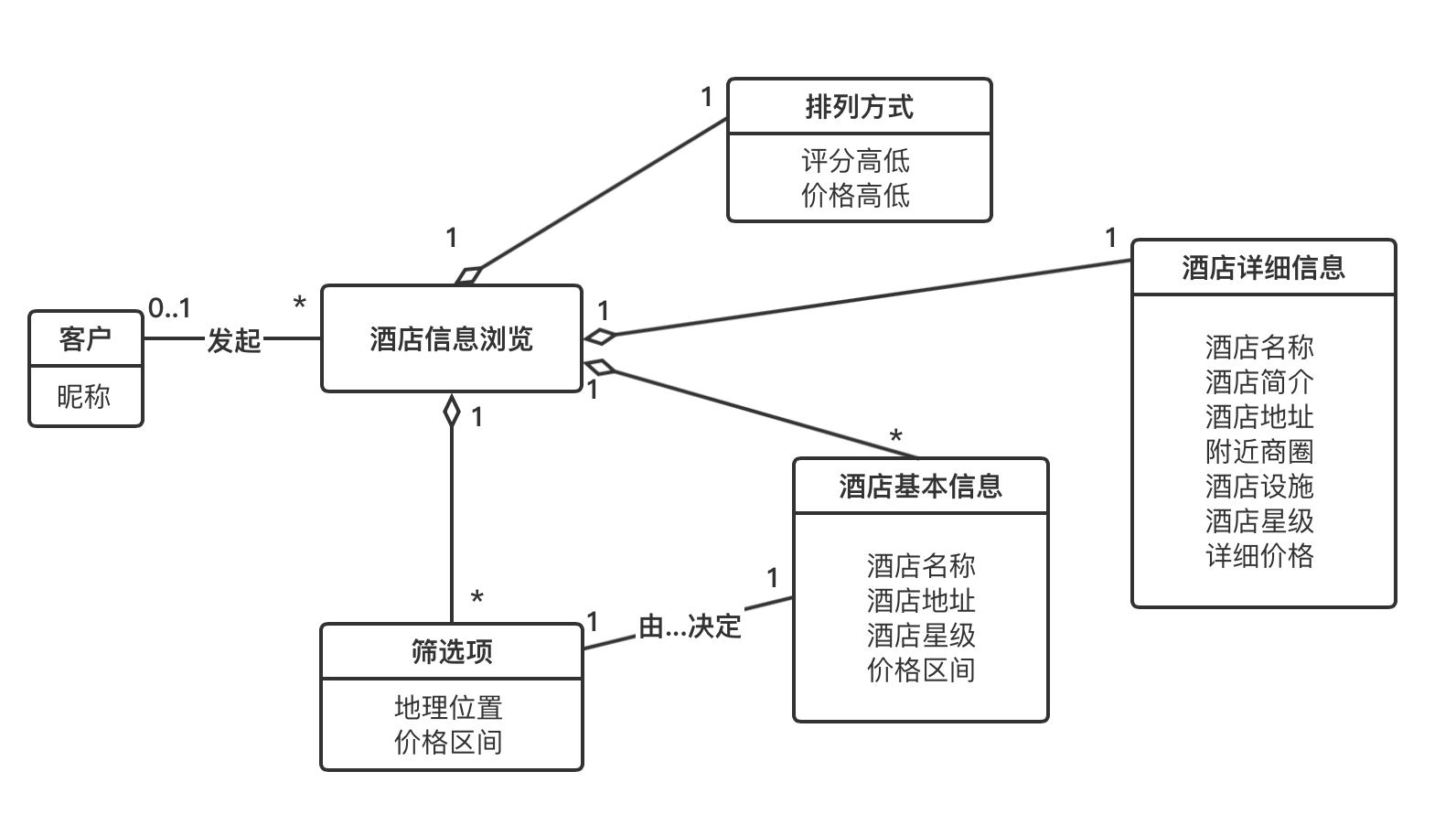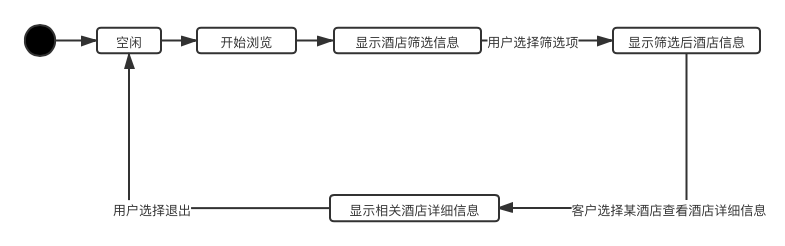 | 前置条件 | 1. 客户登录并且浏览酒店预订网站 2. 相关酒店已经被相关酒店工作人员添加入库 |