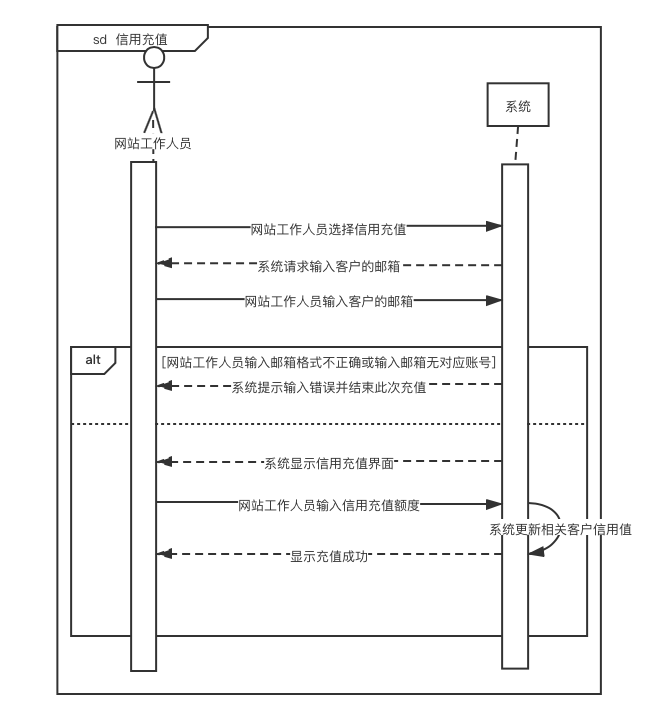| 网站工作人员 | 13. 制定网站促销策略 14. 信用充值 15. 浏览订单(网站) |