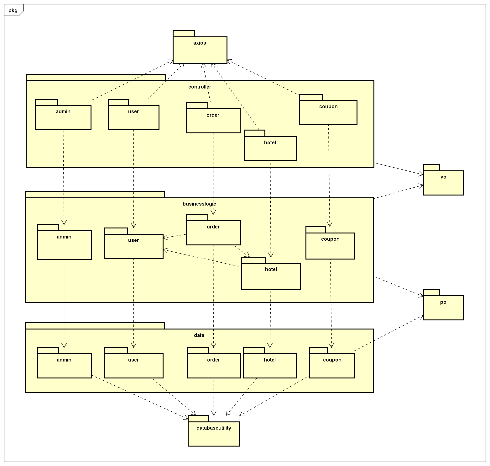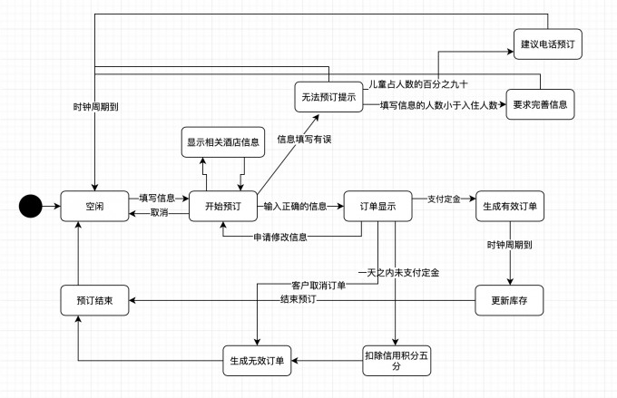 | 客户 | 1. 个人基本信息管理 2. 浏览酒店信息 3. 预定酒店 4. 查看订单(客户) 5. 撤销订单 6. 评价 17. 信用记录查看 |