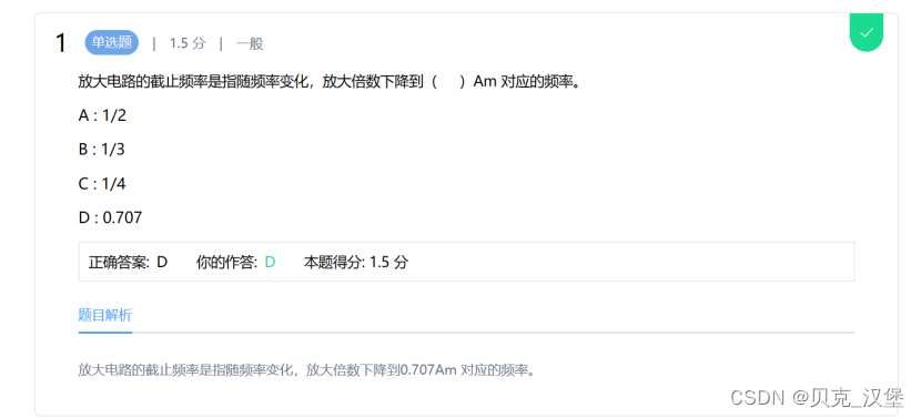 28、放大电路的截止频率是指随频率变化,放大倍数下降到0.707Am 对应的频率。
