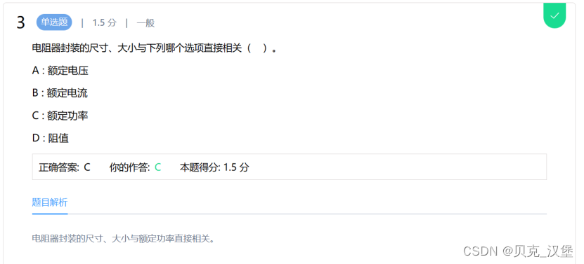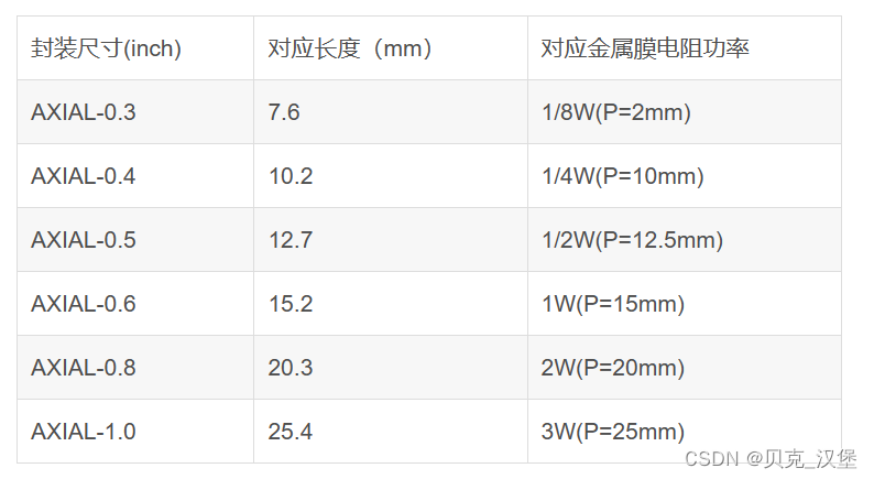 电阻器封装的尺寸、大小与额定功率直接相关。