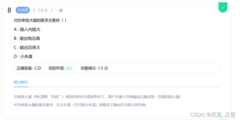 17、对功率放大器的基本要求:在不失真(尽可能小失真)的情况下输出尽可能大的功率。