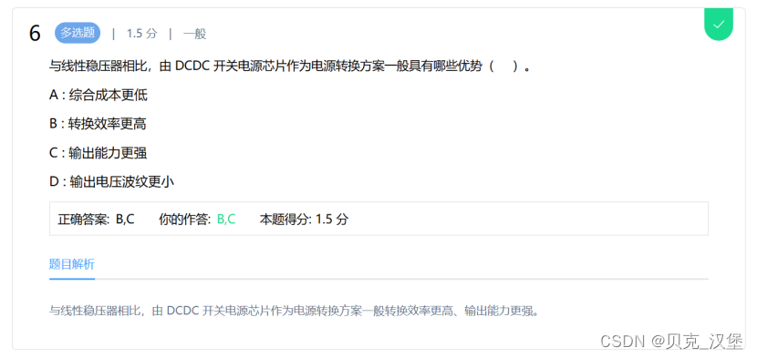 35、与线性稳压器相比,由 DCDC 开关电源芯片作为电源转换方案一般转换效率更高、输出能力更强。