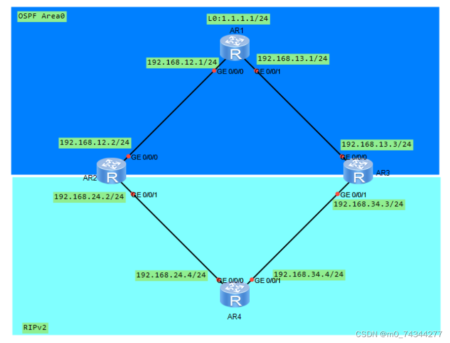 - 必须存在一个边界设备------同时连接两种路由协议或两种进程,同时学习到两种来源的路由信息,之后进行路由共享