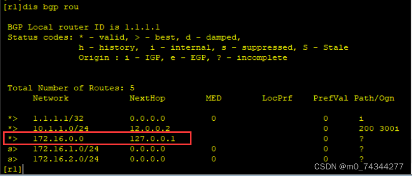 [r1-bgp]network 172.16.4.0 24 route-policy com-2