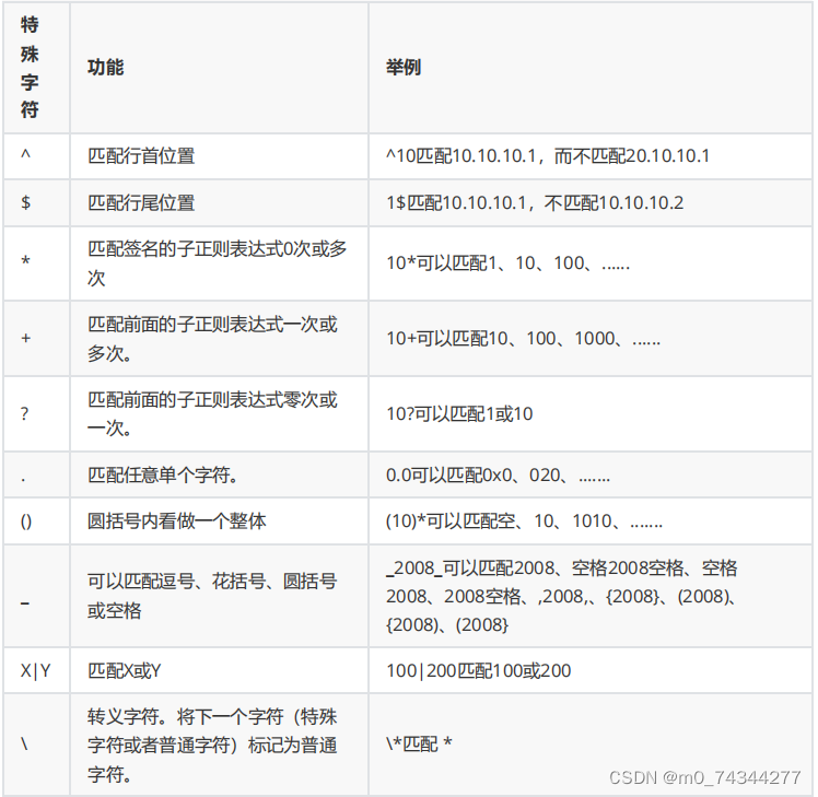正则表达式 组成: ·普通字符 ---- 所有的大写和小写字母、数字、标点符号 ·特殊字符 ---- 具备特殊意义