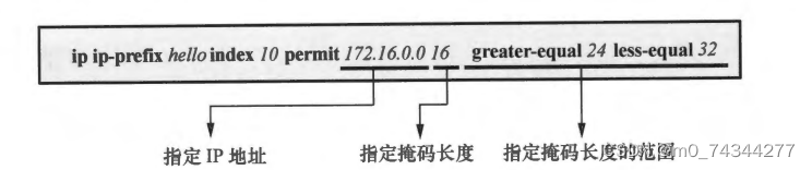 的网络掩码长度必须为24,因此该规则可以抓取172.16.0.0/24[r3]ip ip-prefix aa permit 172.16.0.0 16 less-equal 24