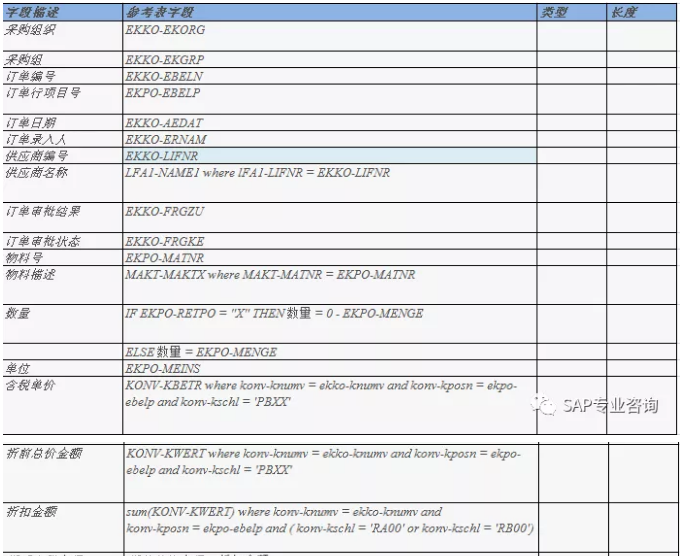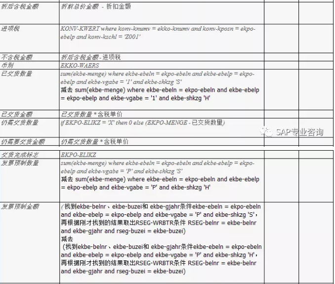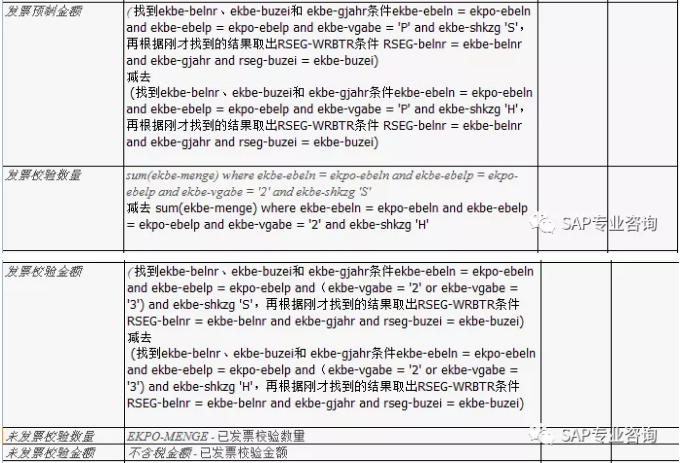 那么如何显示采购订单每个行项目的执行情况,包括订单创建日期、创建人、审批情况、订单数量、订单金额、已交货数量、已交货金额、发票预制数量、发票预制金额、发票校验数量、发票校验金额等数据。可以参考以下取值逻辑