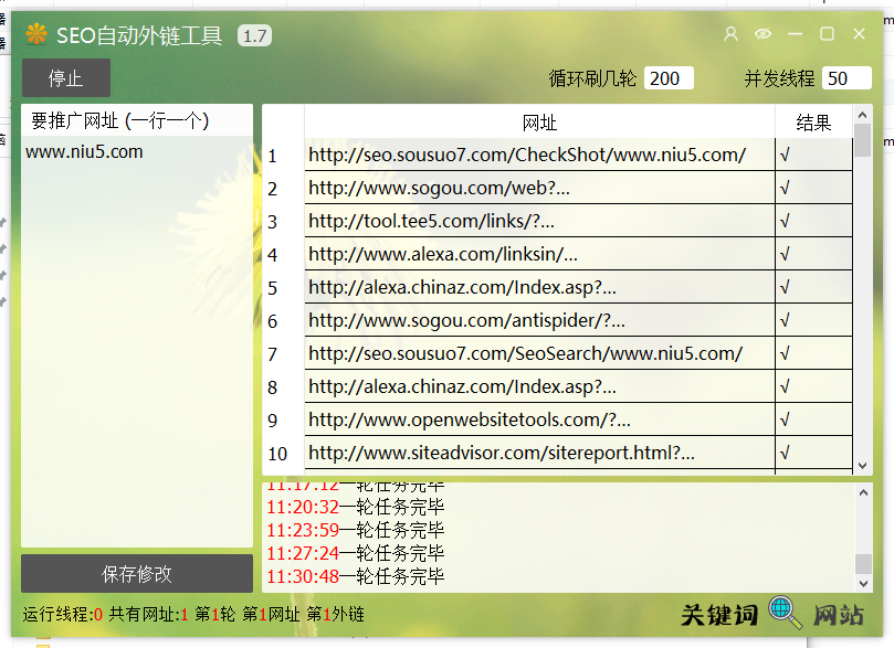 4、自动SEO外链工具使用频率:新站每天两次,老站每天一次.