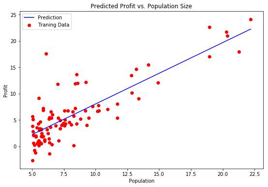 在之前的练习中,我们使用单变量线性回归实现了梯度下降的问题。