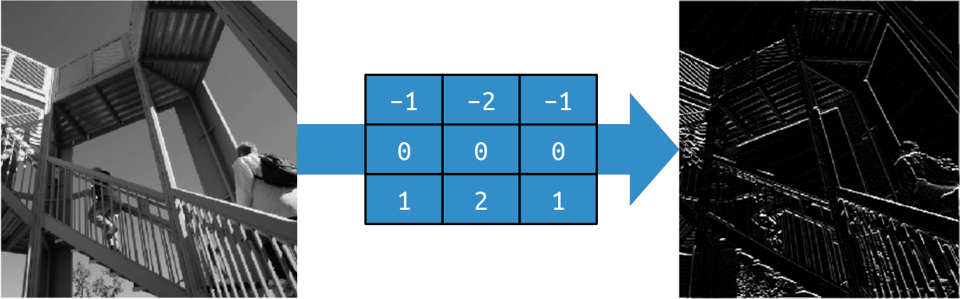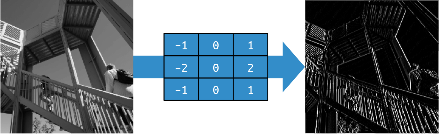 使用左侧为负值、右侧为正值、中间为零的过滤器将最终从图像中删除除垂直线以外的大部分信息,如图3-2所示。