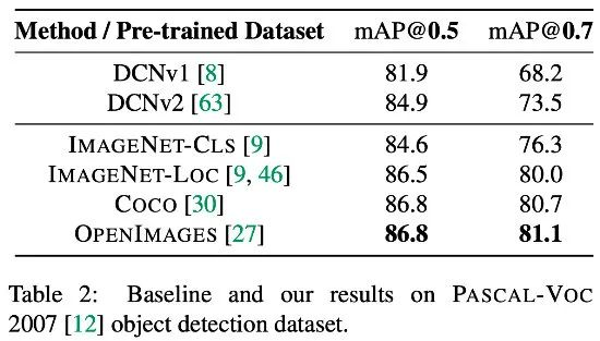 在大的数据集(包括 OpenImagesV4, ImageNet Localization and COCO)预训练检测器,再将特征用到分类、分割、小数据集检测上(比如 PASCAL-VOC, Caltech-256, SUN-397, Flowers-102)。