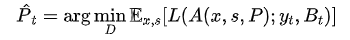 如果是有目标攻击,我们希望找到一个 P,它能使目标类标签 和边界框标签 的损失最小化: