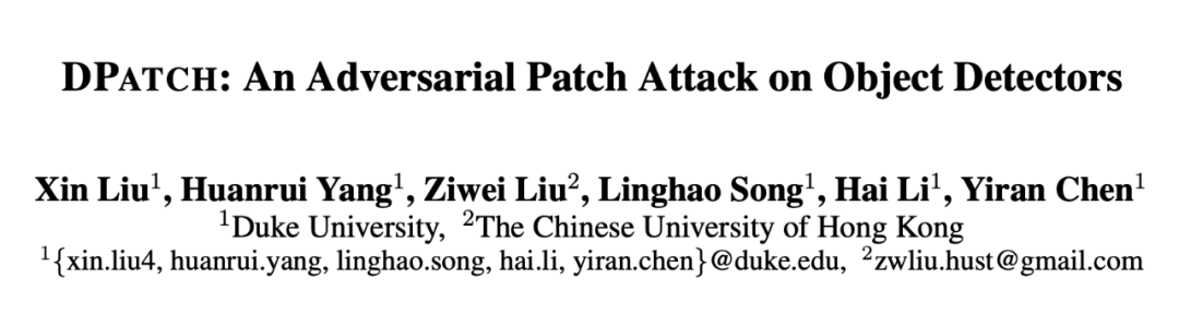 论文标题:DPatch: An Adversarial Patch Attack on Object Detectors