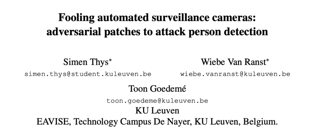 论文标题:Fooling automated surveillance cameras: adversarial patches to attack person detection
