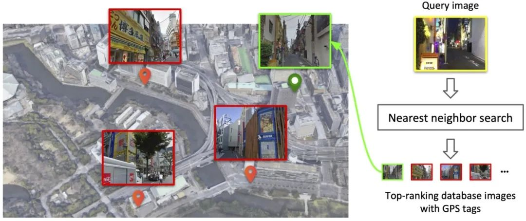 基于检索的图像定位问题旨在通过从城市级规模的数据库中识别出与目标图像最相似的参考图像,从而通过参考图像的地理位置(GPS)来估计目标图像的地理位置。基于检索的图像定位问题也被称为地点识别(Place Recognition)。