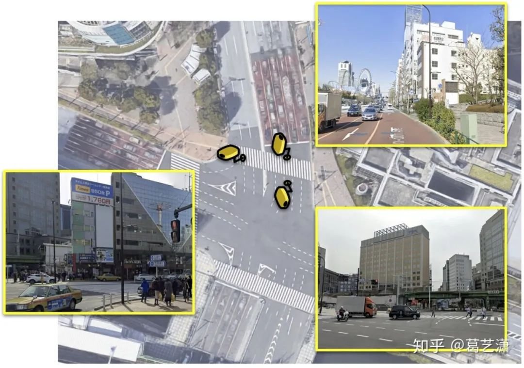 但是,如下图所示,当地理位置上较近(GPS 较近)的图像在面向不同方向时,并不会拍摄到同样的场景,所以仅靠 GPS 进行过滤的潜在正样本中仍然具有很多假性正样本(False Positives)。所以在模型训练中,这被定义为一个弱监督学习问题。