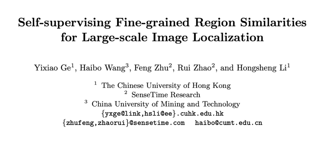 论文标题:Self-supervising Fine-grained Region Similarities for Large-scale Image Localization