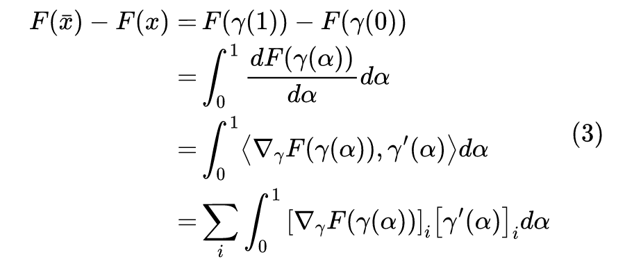 积分梯度正是找到了这样的一个表达式:设 代表连接 x 和 的一条参数曲线,其中 ,那么我们有:
