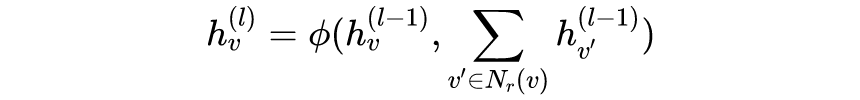 其中, 表示 的关系为 邻居, 是神经网络层。