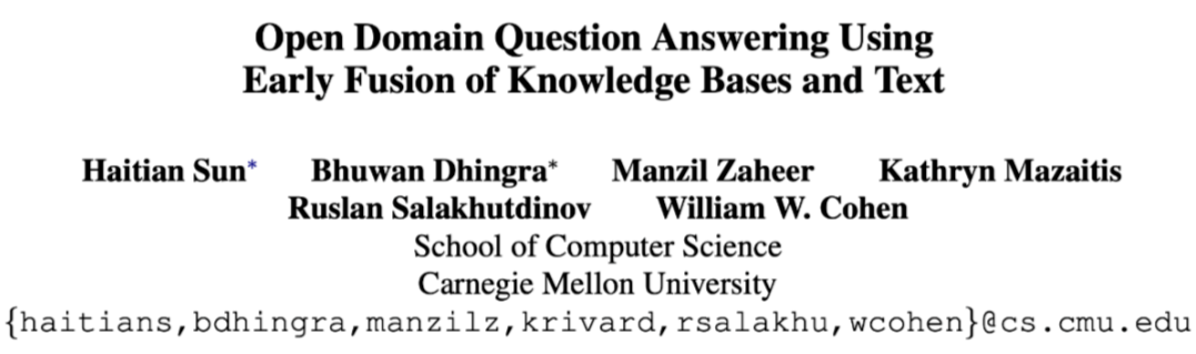 论文标题:Open Domain Question Answering Using Early Fusion of Knowledge Bases and Text