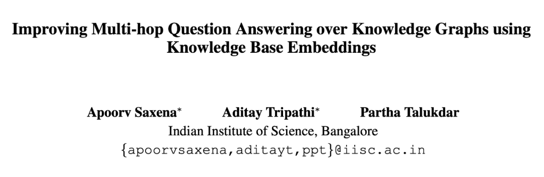 论文标题:Improving Multi-hop Question Answering over Knowledge Graphs using Knowledge Base Embeddings