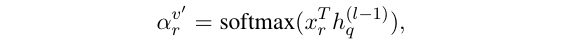 关系上的注意力 注意力权重在等式 1 第三项是使用问题和关系嵌入计算的: