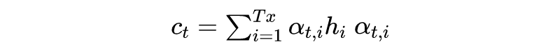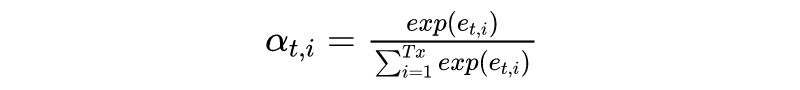 表示解码输出第 t 个词时,与第 i 个输入序列词之间的相关因子。