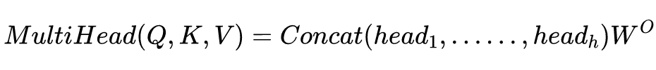 注意力并行化的代表,缩放点积注意力在前面小节中已经提过,多头注意力不仅计算一次注意力,而是并行化计算多次注意力,这样模型可以同时关注多个子空间的信息。计算公式为: