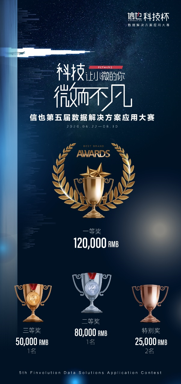 本届“信也科技杯”的slogan是“科技,让小微的你微而不凡”,以小微企业信贷为主题,面向大众征集信贷领域的技术解决方案。以评选参赛者的方案为比赛形式,通过专家学者、企事业专家、权威媒体对参赛选手的项目进行综合评比的方式,评出优胜者。