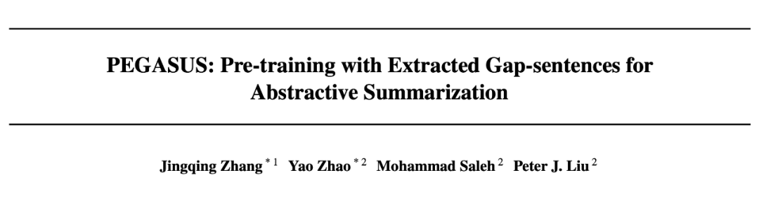 论文标题:PEGASUS: Pre-training with Extracted Gap-sentences for Abstractive Summarization