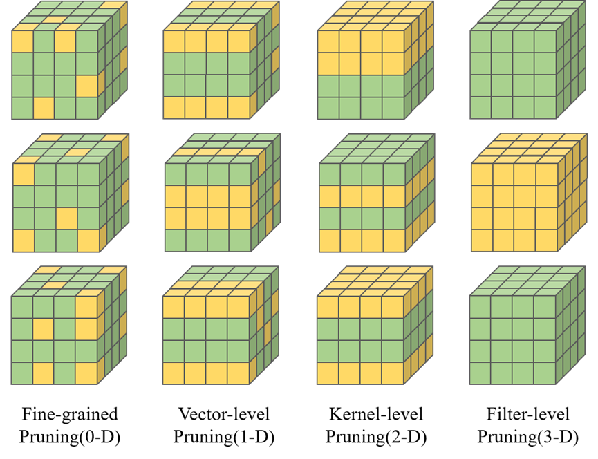 图1.5 从剪枝粒度角度划分的4种剪枝方案示意图