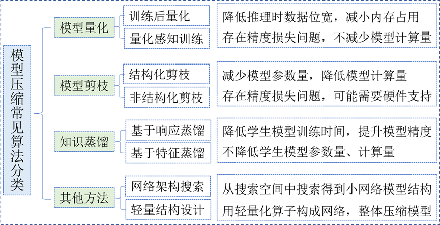 图1.1 深度神经网络模型压缩算法分类与算法特点