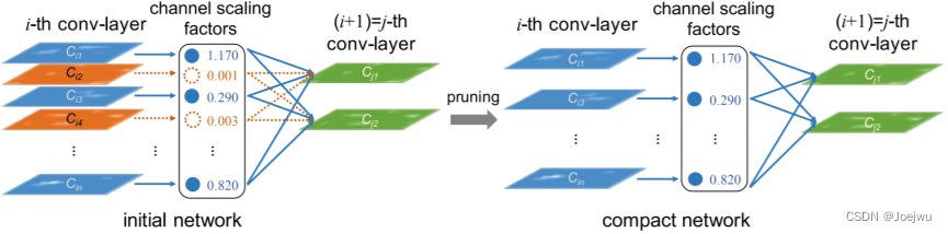 图1.7 基于BN层γ参数剪枝示意图[103]