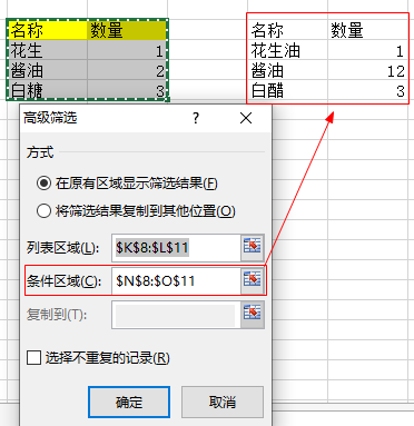 1)选中左边红框的,然后 数据--高级,弹出对话框条件区域选择右边红框内容