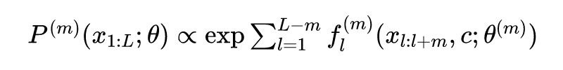 上式中的 是带有参数的 log potential,它可以建模相邻 个单词之间的关系。当 ,得到了一个 non-autoregressive 模型,而当 ,得到 fully autoregressive 模型。