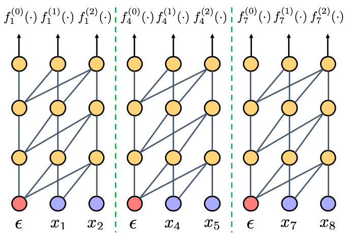 综上,这个模型在测试时可以在任何位置被当做 0 阶、1 阶或者 2 阶模型使用。(我们需要随机选择第一个重置位置,否则比如上图中第 3 个位置无法被用作 0 阶或者 1 阶模型)。