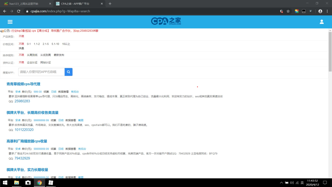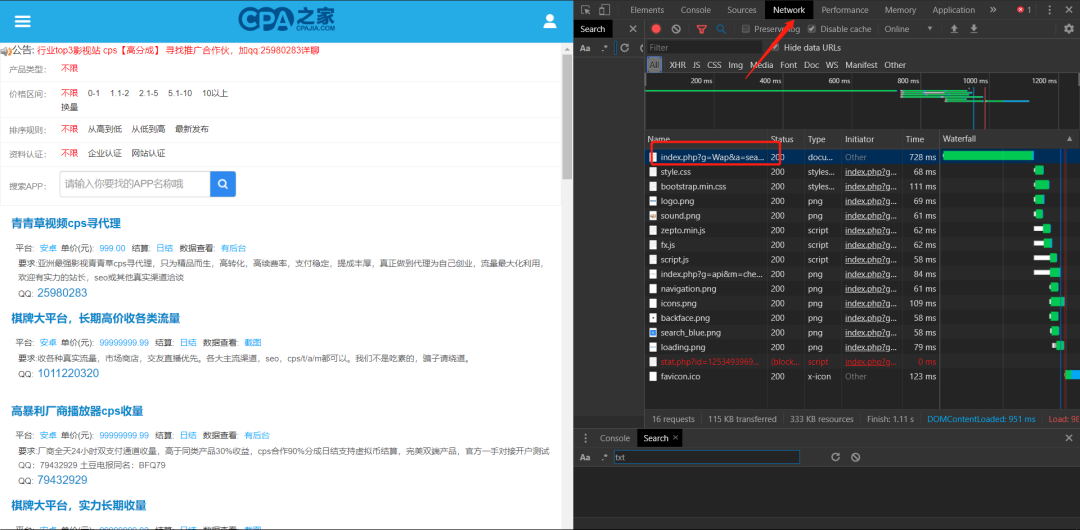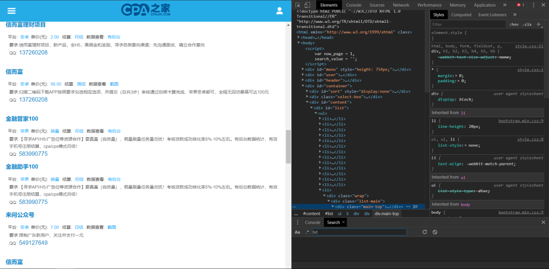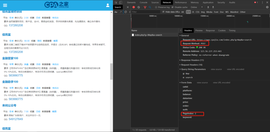 url = 'https://www.cpajia.com/index.php?g=Wap&a=search' #网址