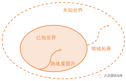执行的过程其实很痛苦,因为你需要向两个方向不断努力:已知世界的熟练度提升、未知世界的领域拓展。