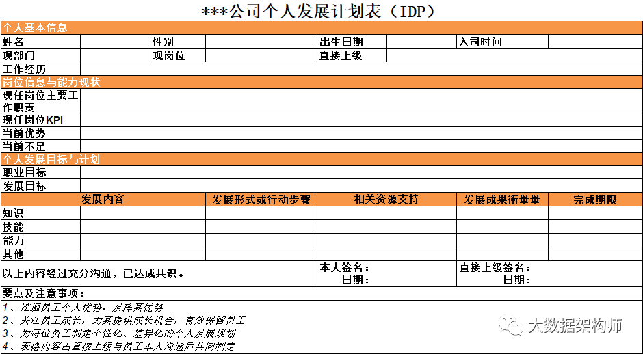 首先有个东西叫做“个人发展计划IDP”,用来做个人中长期发展规划用的。IDP长这个样子: