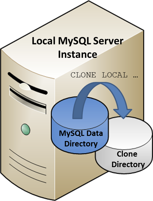 # 本地克隆,使用克隆语句带上LOCAL关键字,并指定本地MySQL Server的数据存放目录,如果不指定存目录,则不允许执行本地克隆操作