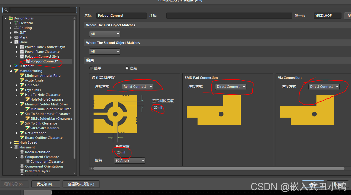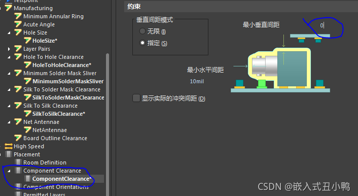 5、下面几项属于特殊设置,只有板子上某器件总显示绿色(表示警告提示),才设置,否则,保持默认设置。