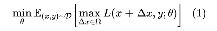 其中 代表训练集,代表输入,代表标签,是模型参数,是单个样本的 loss,是对抗扰动,是扰动空间。这个统一的格式首先由论文 Towards Deep Learning Models Resistant to Adversarial Attacks [4] 提出。