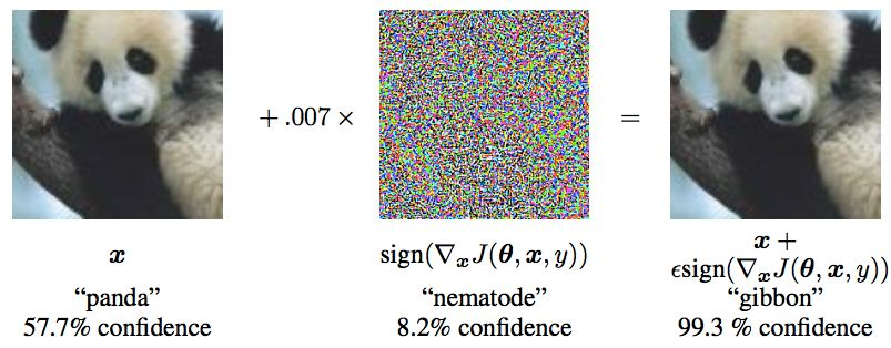 简单来说,它是指对于人类来说“看起来”几乎一样、但对于模型来说预测结果却完全不一样的样本,比如下面的经典例子: