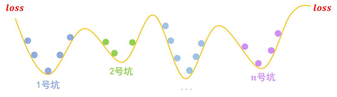 事实上,关于梯度惩罚,我们有一个非常直观的几何图像。以常规的分类问题为例,假设有 个类别,那么模型相当于挖了 个坑,然后让同类的样本放到同一个坑里边去: