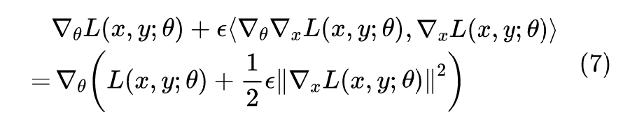 这个结果表示,对输入样本施加 的对抗扰动,一定程度上等价于往 loss 里边加入梯度惩罚。