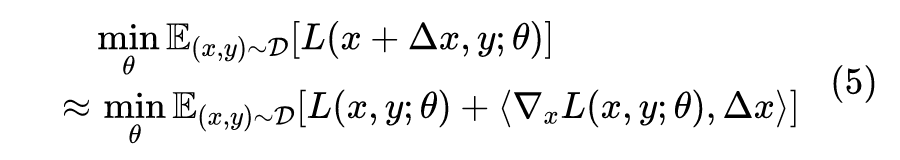 假设已经得到对抗扰动 ,那么我们在更新 时,考虑对 的展开:
